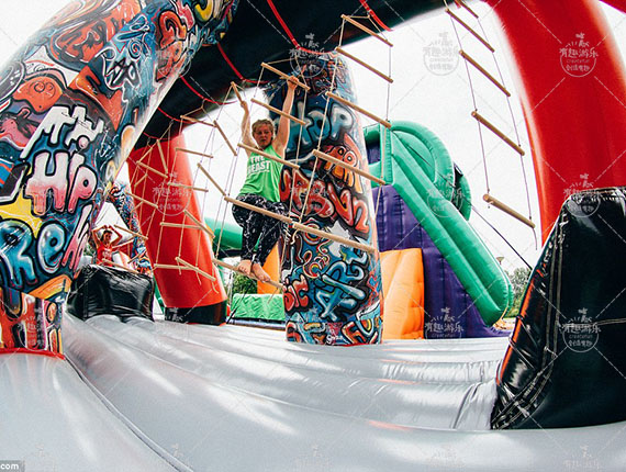 水上大沖關(guān)特征:水上大沖關(guān)是一組漂浮在水面上,色彩艷麗的障礙組合大沖關(guān)項目。水上大沖關(guān)項目針對不同人群進行不同的關(guān)卡設(shè)計,例如男生賽道將更注重力量與速度,女生賽道則在智慧與趣味上。