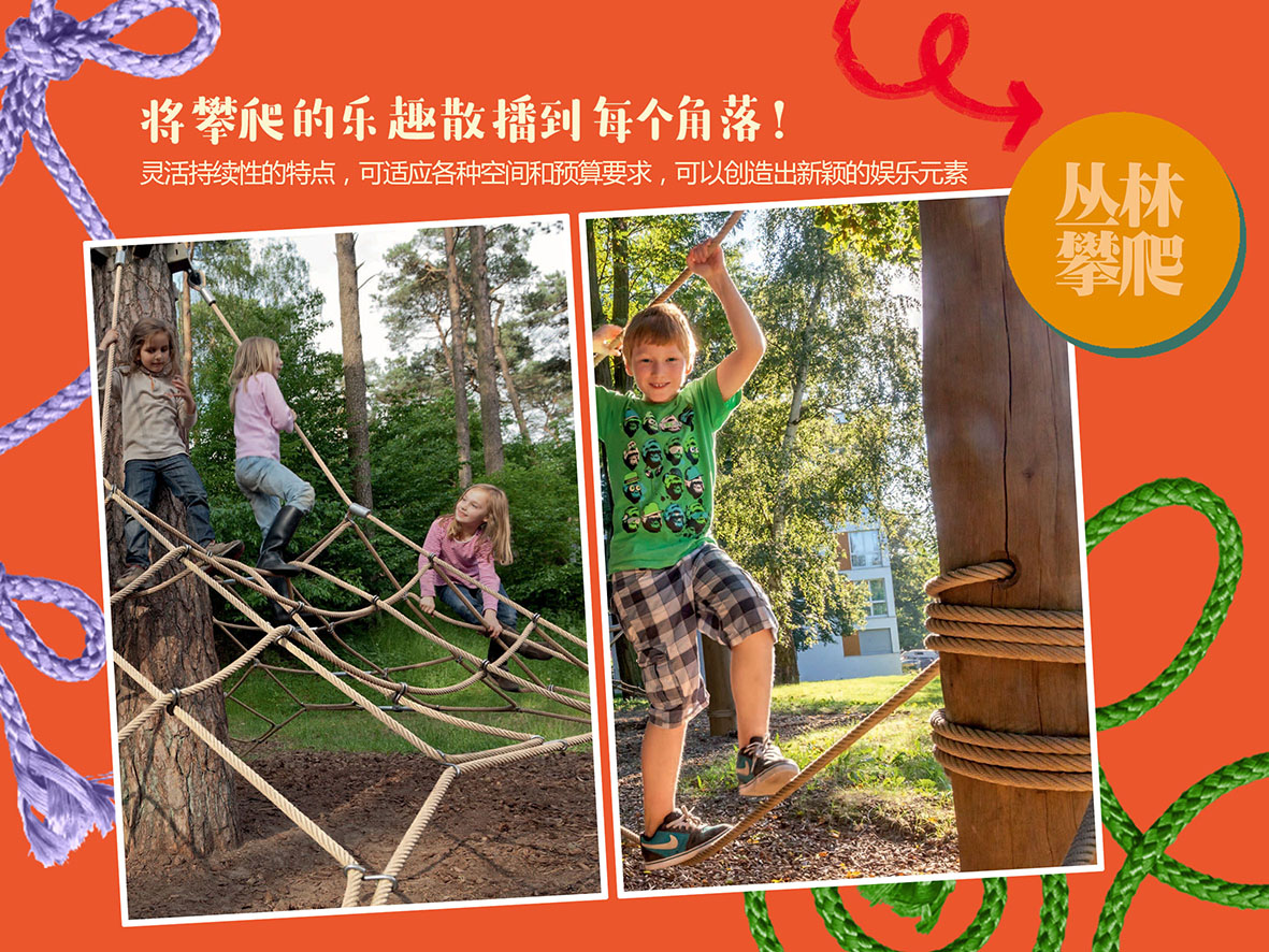 叢林魔網(wǎng)(叢林繩網(wǎng))可以成為所有年齡段人群夢(mèng)幻般樂趣的來源,可以全家一同享受的無動(dòng)力游樂項(xiàng)目。叢林繩網(wǎng)被設(shè)計(jì)為可供大多數(shù)人使用,但需要適當(dāng)程度的體力支出和精神挑戰(zhàn)。