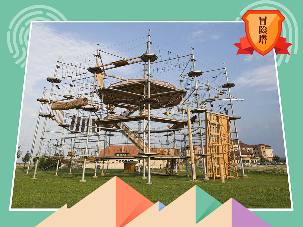 冒險(xiǎn)塔也稱之為攀爬塔,人們很自然地想爬上一些東西,每個(gè)人勇氣的高低往往決定了挑戰(zhàn)的難度。攀爬的過程是提升決策能力、注意力、訓(xùn)練空間感、建立自信心的過程。攀爬塔項(xiàng)目設(shè)置了不同層面高度的項(xiàng)目,有效的利用場(chǎng)地空間,非常適合納入場(chǎng)地設(shè)計(jì)的規(guī)劃考慮。