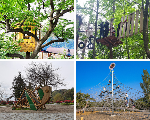 針對(duì)湖泊河流,我們推出的有趣味的溜索和吊橋。
